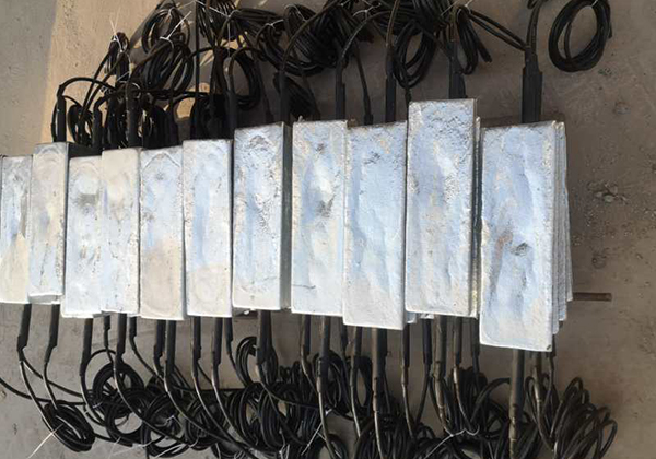 我公司根據(jù)國(guó)標(biāo)GB/T17731-2009《鎂合金犧牲陽極》研發(fā)生產(chǎn)的SMD系列鐲式鎂合金犧牲陽極(簡(jiǎn)稱:鐲式鎂陽極)適用于土壤中的管道、電纜等設(shè)施金屬防腐蝕的陰極保護(hù)。根據(jù)不同的使用環(huán)境可以做成不同的形狀,陽極體通赤自帶的兩只鐵腳與被保護(hù)物連接。